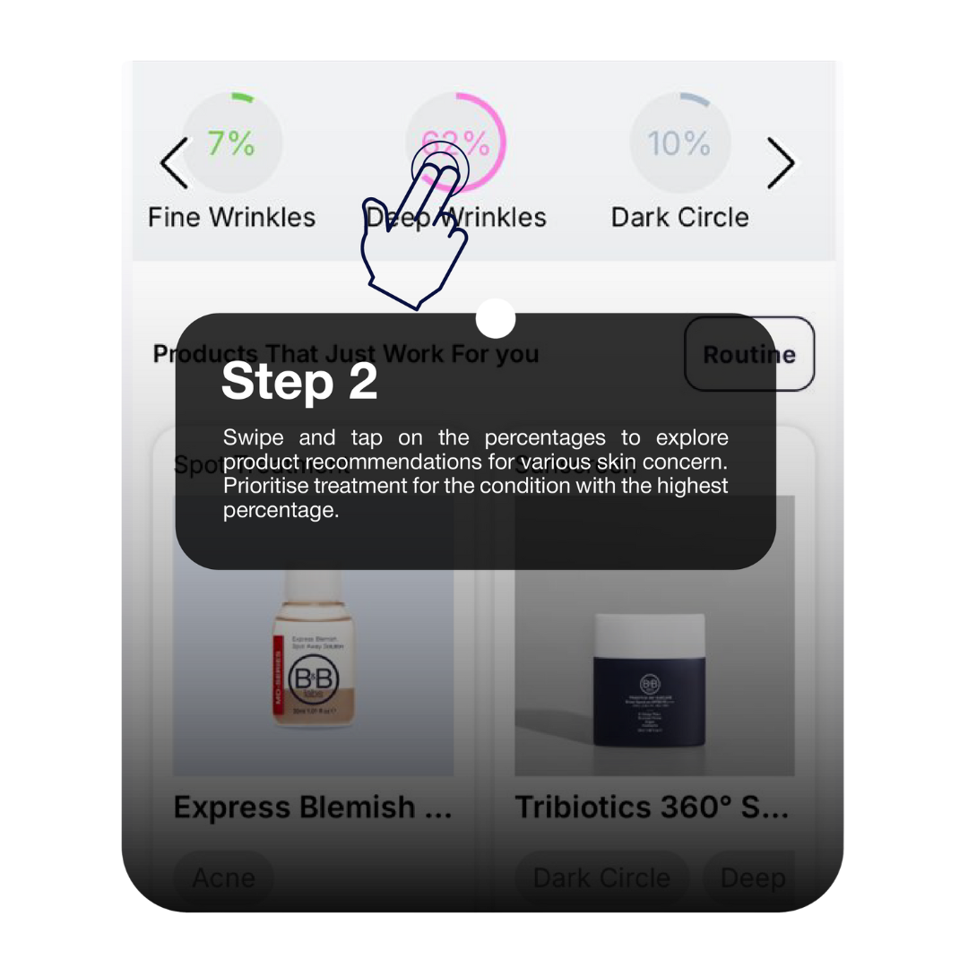 Our AI-powered Skin Analyzer provides a personalised skin assessment in just a few simple steps. Follow the guide below as your reference: