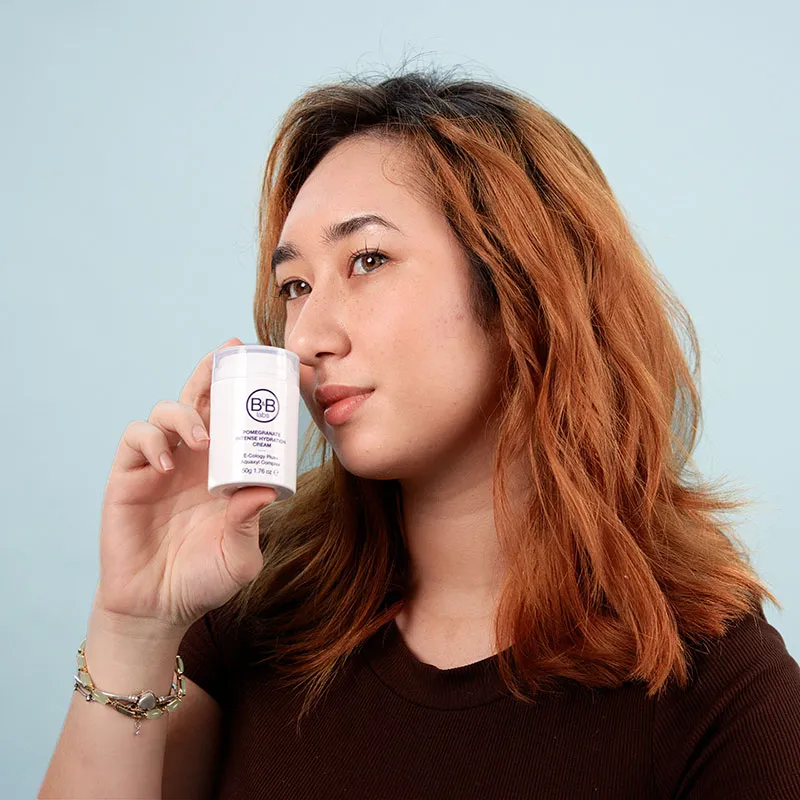 Scoop the moisturiser with finger, gently spread and pat (don’t rub) a small amount of cream onto face until fully absorbed.